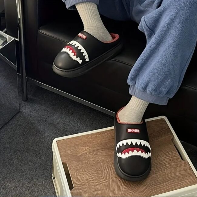 Gardez un style incomparable, même en intérieur, avec notre paire de chausson homme original. Son design authentique Shark, rehaussé par sa belle couleur noir ou bleu apporte une touche de fun à vos moments de détente en plus de pouvoir s’harmoniser à tous styles de tenues chill. La conception assure également un vrai confort avec une surface douce en peluche qui enveloppe parfaitement les pieds et une semelle EVA antidérapante qui assure une excellente sécurité. Idéal pour toutes les saisons, cette paire de qualité saura vous accompagner sur plusieurs années !