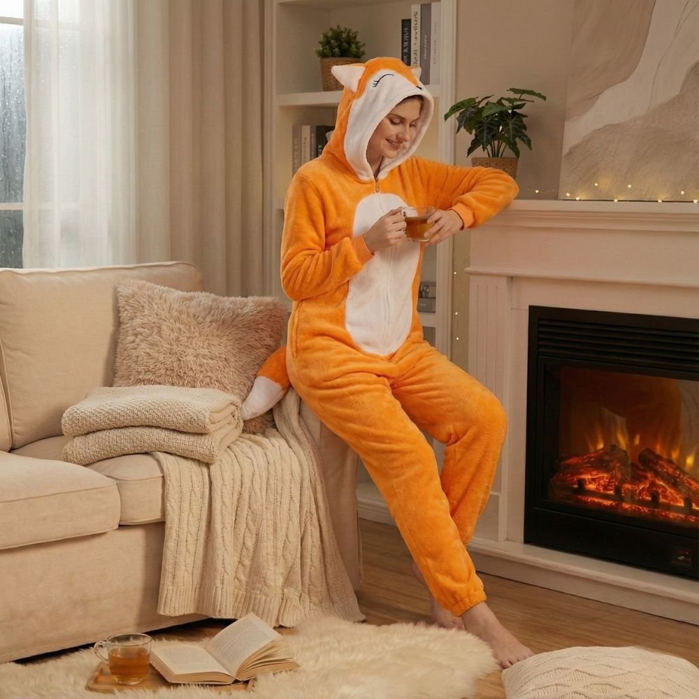 Retour au temps des déguisements du mardi gras. Cette combinaison pilou motif renard vous offre exactement la meme sensation, version adulte, chaude et totalement assumée. Sa flanelle douce enveloppe votre corps d’une chaleur réconfortante, tandis que la capuche avec oreilles et le ventre blanc contrasté vous transforment instantanément en renard malicieux. Pratique avec sa fermeture éclair intégrale, elle se glisse en deux secondes pour vos soirées Netflix ou vos dimanches paresseux. Disponible en 5 tailles différentes, cette combinaison s’offre une bonne liberté de mouvements peu importe votre morphologie. Adopter cette combinaison c’est s’offrir des moments joyeux tout en profitant d’une chaleur réconfortante chez soi.