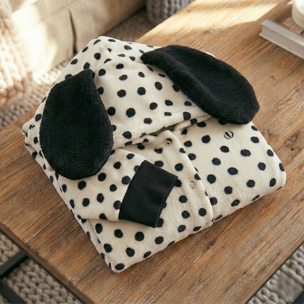 Envie de troquer votre pyjama classique contre un modèle qui allie confort et amusement ? Cette combinaison en flanelle douce adopte les taches iconiques du dalmatien pour apporter plus de gaieté à vos soirées canapé. Sa capuche et ses manches longues vous enveloppent dans une chaleur réconfortante, tandis que sa matière respirante évite de vous faire transpirer même après plusieurs heures au chaud sous un plaid. Parfaite du début de l’automne jusqu’aux derniers froids de l’hiver, elle se porte aussi bien pour un dimanche cocooning que pour une soirée pyjama entre copines. Disponible du S au XL, elle vous offre cette liberté de mouvement qui fait toute la différence pour chiller chez soi.