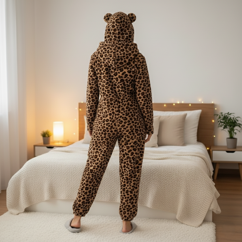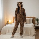 Quand le froid s’installe et que l’envie de se mettre au chaud chez est devenu indispensable, cette combinaison en pilou pilou léopard devient votre meilleure alliée. Sa matière épaisse et moelleuse vous enveloppe d’une chaleur immédiate, tandis que son imprimé sauvage ajoute ce petit supplément d’audace qui fait toute la différence dans votre style. Les petites oreilles sur la capuche apportent cette touche ludique qui rend la tenue d’intérieur encore plus stylée. Que vous l’enfiliez pour un marathon séries sous le plaid, une session lecture devant la cheminée ou simplement pour traîner avec votre tasse de thé chaude, elle s’adapte à tous vos moments cosy de l’automne au printemps. Offrez-vous ce petit luxe tout doux qui réconcilie férocité et douceur.
