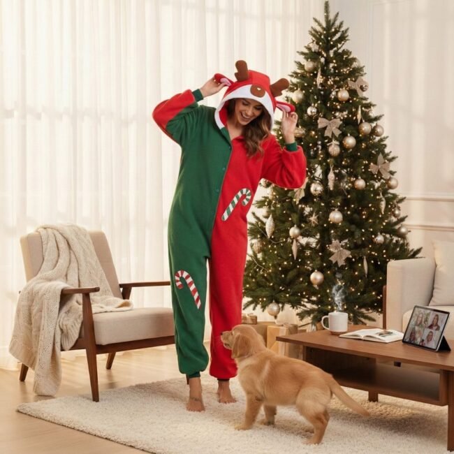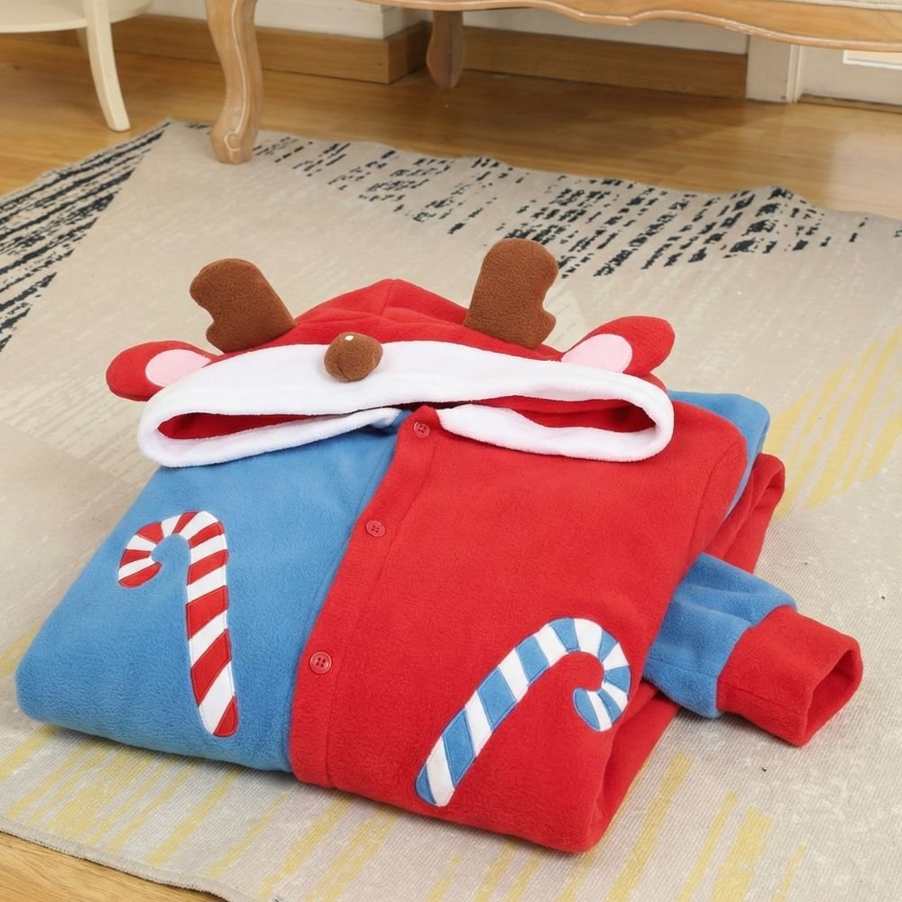 Imaginez-vous un soir de décembre, avec cette envie de se poser et de savourer la magie de Noël chez vous. Cette combinaison en polyester doux vous enveloppe dans une chaleur réconfortante grâce à son tissu épais qui retient la chaleur sans jamais vous alourdir. Sa capuche ornée de bois de renne et son design bicolore rouge et bleu ou rouge et vert créent cette ambiance festive qui rend chaque instant plus joyeux, tandis que les détails sucre d’orge brodés ajoutent une touche ludique irrésistible. Parfaite pour vos matins paresseux du weekend, vos marathons de films de Noël ou même pour créer des souvenirs en photo avec ceux que vous aimez, elle se boutonne facilement et reste confortable du matin au soir. Offrez-vous cette dose de fantaisie et de douceur qui fait du bien au moral quand les températures chutent.