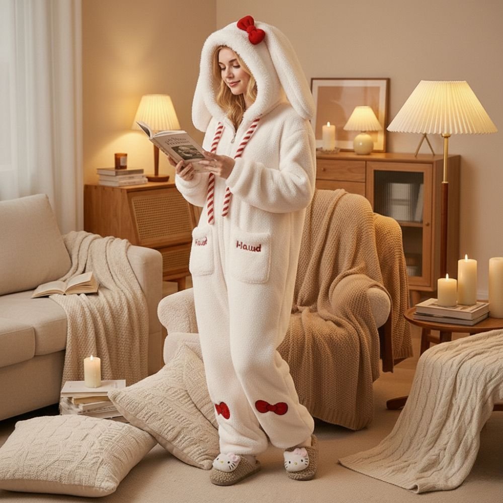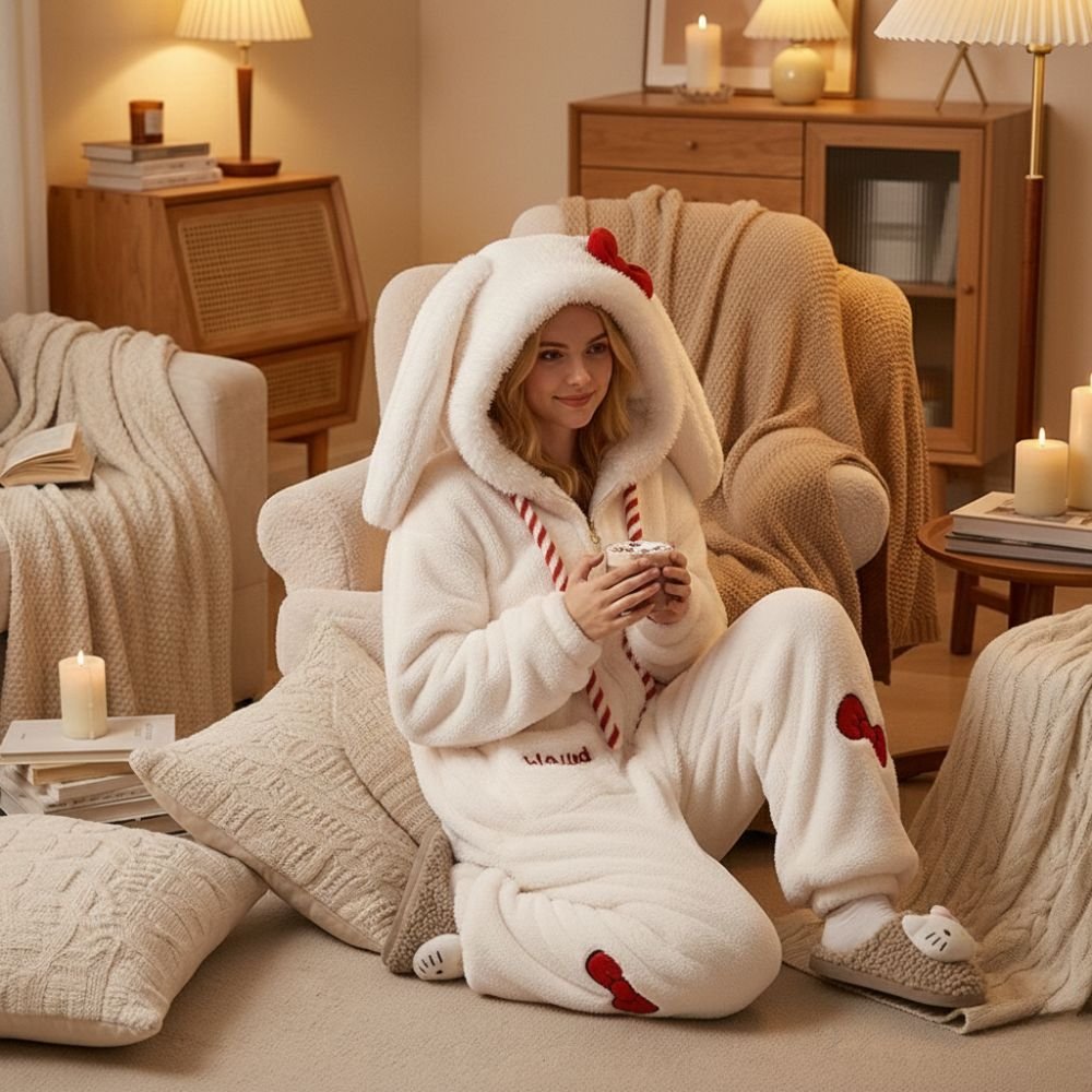 Quand le froid s’installe et que l’envie de ne plus bouger du canapé devient irrésistible, cette combinaison en polaire corail épaisse vous enveloppe dans une chaleur réconfortante. Sa fourrure généreuse et ses adorables broderies lapin créent cette atmosphère de cocon chaleureux où l’on aime se blottir après une longue journée. Avec sa capuche doublée et ses manches longues, elle retient la chaleur tout en restant agréable à porter grâce à sa texture moelleuse et sa qualité fluide qui offre une bonne liberté de mouvements. Les poches brodées offrent une protection contre le froid pour vos mains, et le tout reste facile à enfiler grâce à sa fermeture zippée. Offrez-vous ces moments de pure détente où seul votre confort compte.