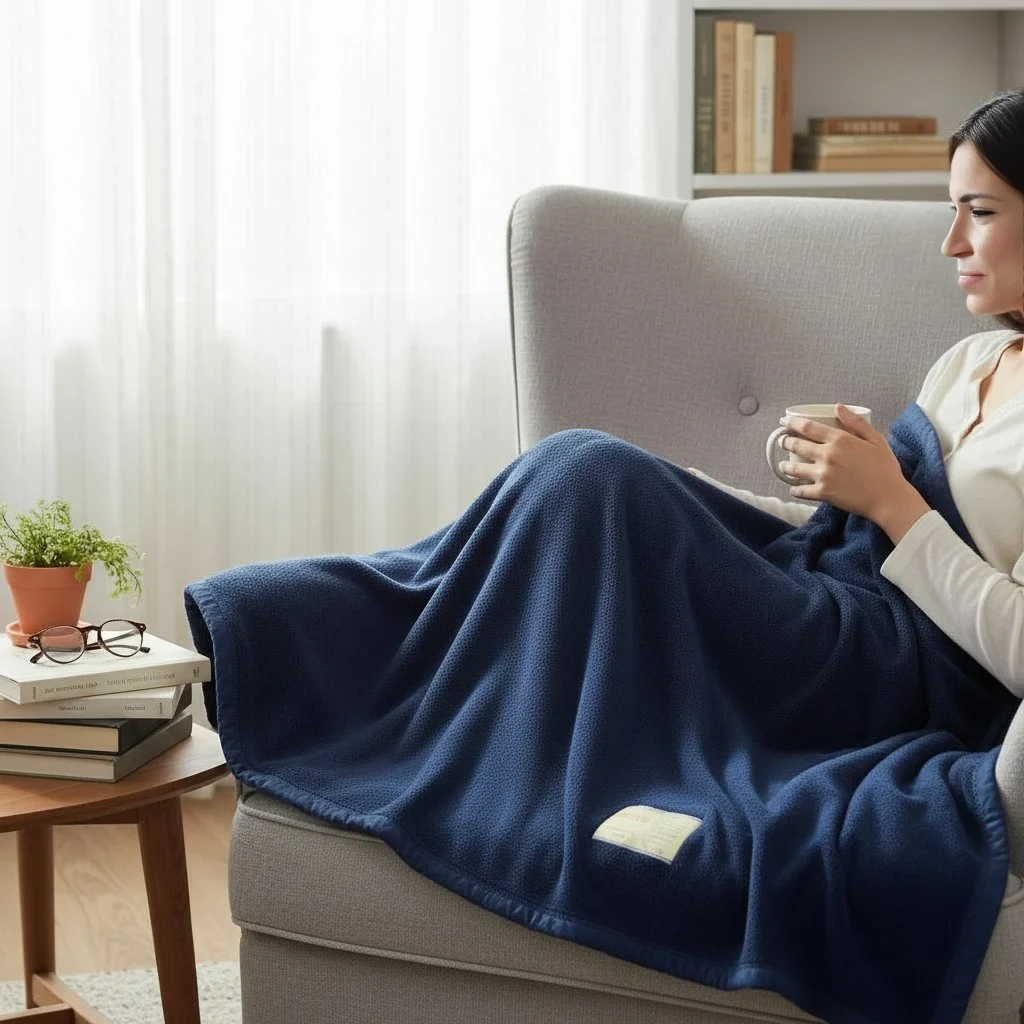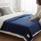 Plaid en laine bleu : douceur naturelle et Sérénité