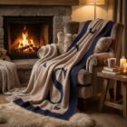 Il y a ces matins où l’on voudrait rester au chaud sans jamais bouger, et ce plaid en laine mêlée de cachemire répond exactement ce besoin-là. Sa composition naturelle crée une barrière thermique efficace qui maintient la chaleur autour de vous, tandis que le cachemire offre un toucher moelleux. Les grandes rayures beige et bleu marine apportent cette touche élégante qui habille joliment votre fauteuil ou votre canapé, même quand vous ne l’utilisez pas. Imaginez-vous un samedi après-midi, livre à la main, tasse fumante posée sur la table basse, entièrement enveloppée dans cette matière qui vous isole du froid. Voilà le genre de petits rituels réconfortants qui rendent l’hiver tellement plus agréable.