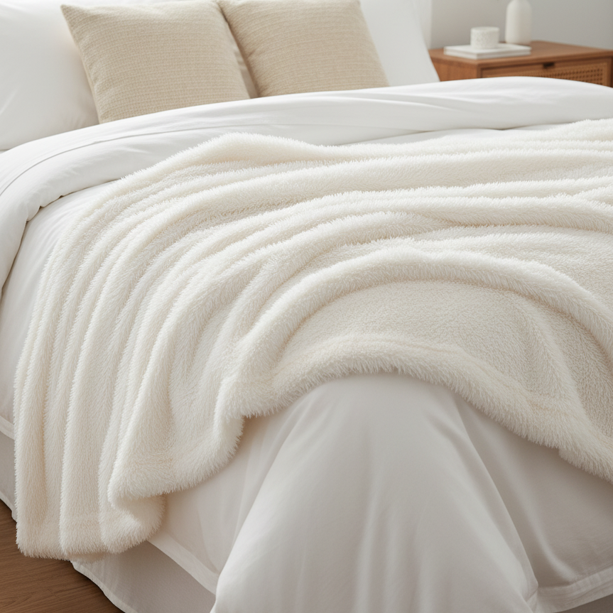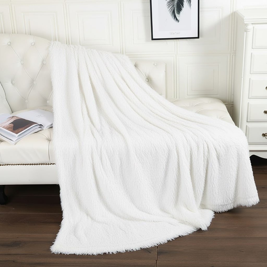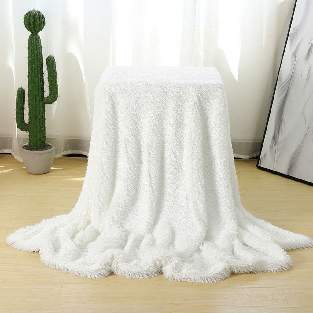 Plaid fausse fourrure blanc poil long : votre couverture cocooning