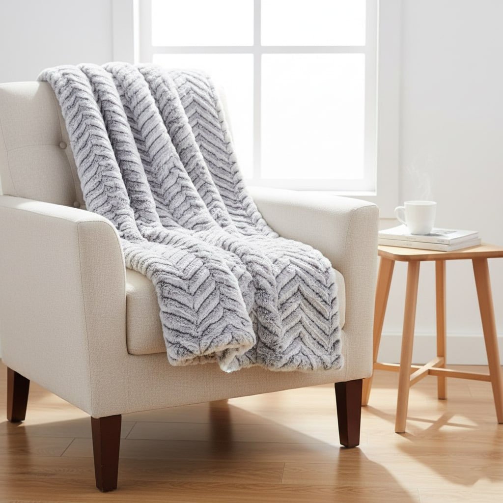 Plaid fausse fourrure gris et blanc : votre cocon de douceur aux motifs géométriques