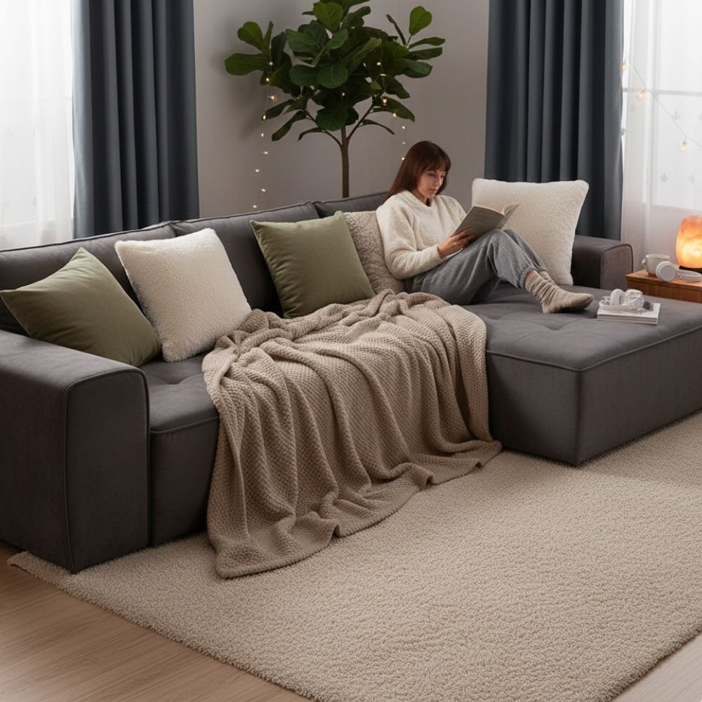 Installez-vous confortablement dans votre canapé et laissez-vous envelopper par la douceur exceptionnelle de ce plaid polaire mouton. Sa matière moelleuse apporte une chaleur réconfortante et une sensation de bien-être immédiat. Que ce soit pour lire, regarder la télévision ou simplement vous détendre, ce plaid devient votre allié confort au quotidien. Proposé dans une belle gamme de coloris: rose poudré, bleu-gris, vert armée ou café, il trouve naturellement sa place dans votre intérieur. Pratique et facile d’entretien, il se lave en machine à 30°C sans perdre sa douceur. Un essentiel pour profiter pleinement de vos moments de détente à la maison.
