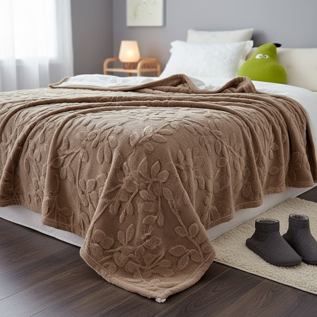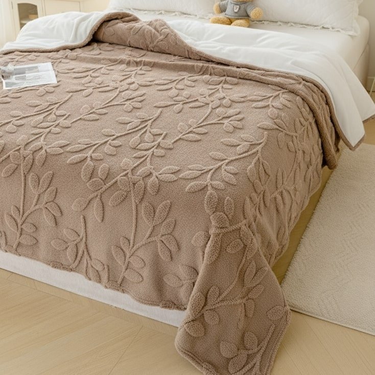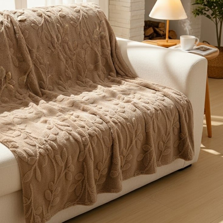 Il y a des dimanches où l’on rêve juste de s’installer confortablement avec un bon livre, sans bouger jusqu’au soir. Ce plaid beige aux motifs en relief discrets transforme ces moments en véritable parenthèse douce. Sa matière polaire en polyester procure une sensation enveloppante dès les premiers instants, tandis que son épaisseur bien pensée retient la chaleur sans jamais vous donner trop chaud. Les délicats motifs floraux gaufrés ajoutent cette petite touche d’élégance qui fait toute la différence dans un salon, pour un effet déco qui ne passe jamais inaperçu. Que ce soit pour vos soirées séries d’automne ou vos petits-déjeuners paresseux du dimanche, il devient vite l’allié de tous vos instants cosy à la maison.
