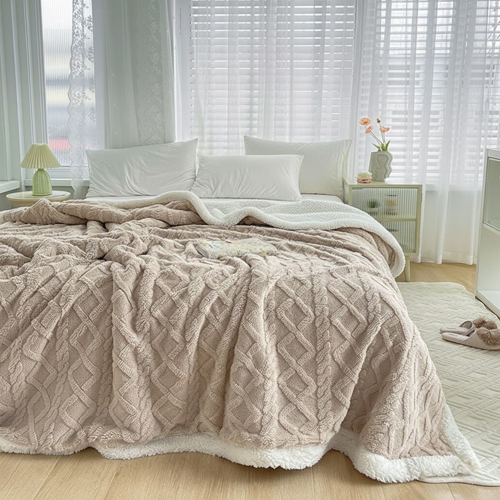 Imaginez-vous enveloppée dans une grande douceur, que ce soit pour une pause lecture sur le canapé ou pour une nuit de sommeil réconfortante. Cette couverture en velours jacquard ultra-moelleux devient votre alliée bien-être à tout moment. Sa chaleur réconfortante s’invite à chacun de vos moments de détente : plaid douillet pour le canapé ou couette enveloppante pour vos nuits d’hiver dans le lit. Son motif géométrique moderne et sa taille XXL apportent cette touche d’élégance qui réchauffe autant les yeux que le corps. Plus besoin de multiplier les plaids chez soi, ce modèle suffit pour passer du confort du jour à la chaleur protectrice de la nuit.