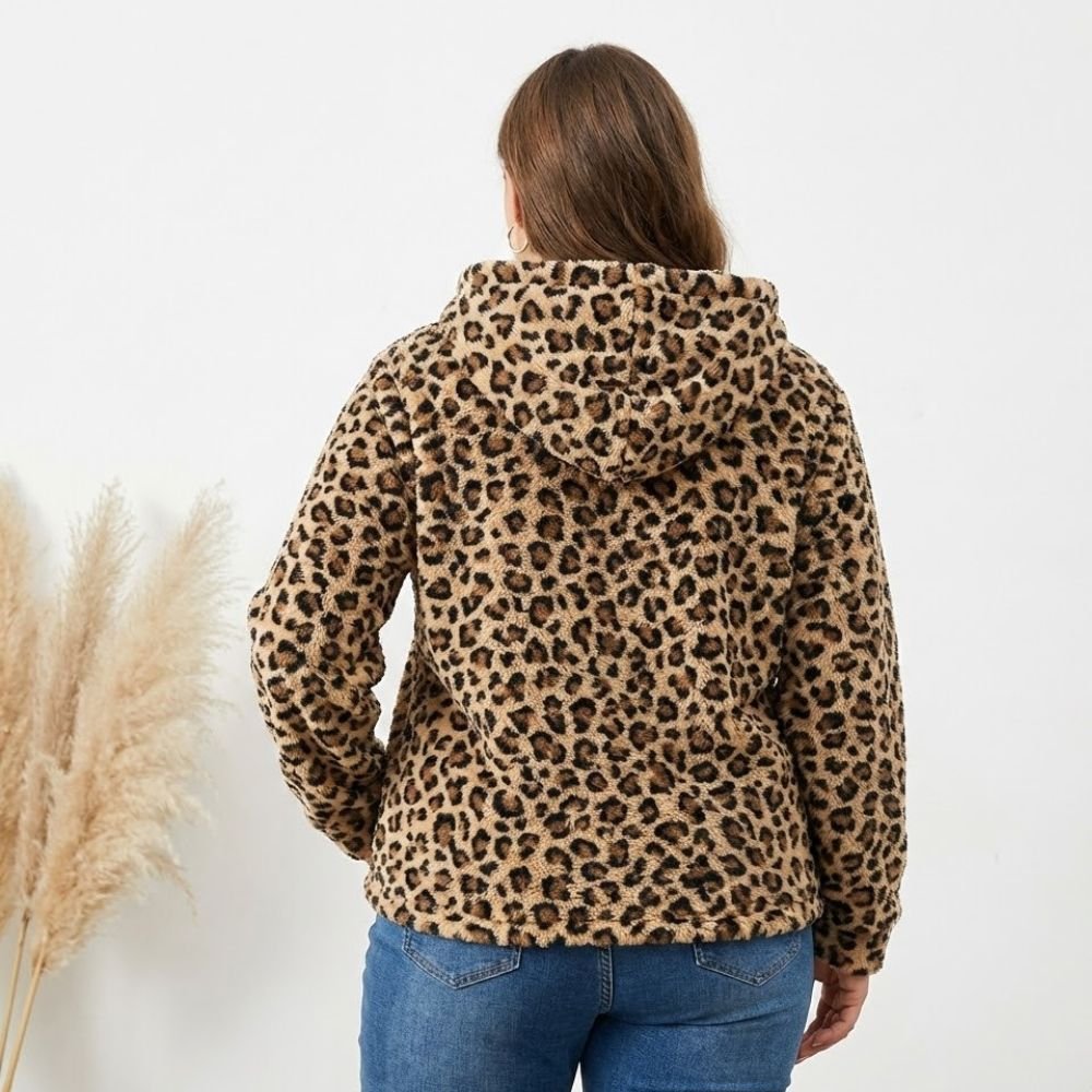 Quand les températures baissent, on a toutes envie de ce mélange parfait : rester bien au chaud tout en gardant un style affirmé. Ce pull en flanelle épaisse apporte une chaleur enveloppante grâce à sa matière dense et moelleuse, tandis que son imprimé léopard beige et marron ajoute ce twist sauvage qui change tout. Sa capuche généreuse protège du froid et ses poches pratiques gardent vos mains au chaud pendant vos matinées cocooning. Avec sa coupe libre et confortable, il s’adapte naturellement à toutes les morphologies sans jamais comprimer. Parfait sur un jean pour vos sorties détente ou avec un legging pour vos dimanches canapé, ce pull pilou grande taille devient vite celui qu’on enfile dès qu’on rentre à la maison.