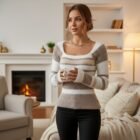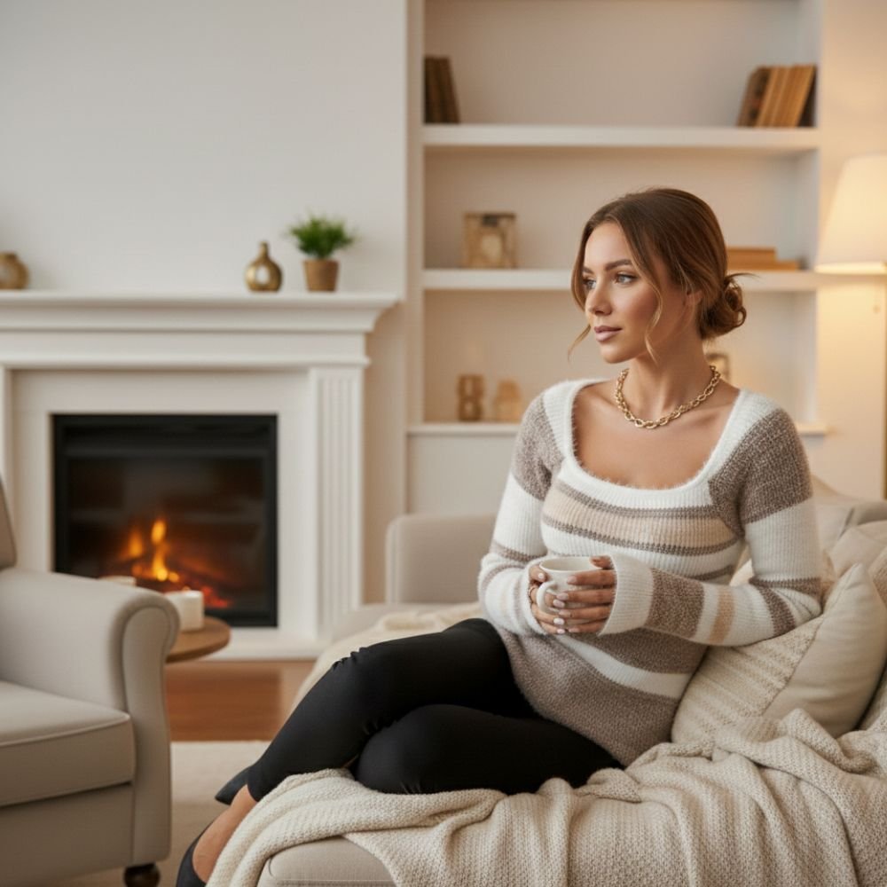 Quand le froid s’installe et que vous cherchez cette pièce qui allie confort et allure, ce pull devient vite indispensable. Sa matière en polyester offre une douceur incroyable au toucher, tandis que son col carré sublime la ligne du cou et s’associe avec n’importe quel bijou. Les rayures délicates dans des tons neutres apportent ce côté chic sans effort, parfait pour passer du télétravail à un café entre amies sans changer de tenue. Avec sa coupe libre et ses manches longues, il vous accompagne tout l’automne et l’hiver en vous gardant bien au chaud, sans jamais sacrifier votre style.