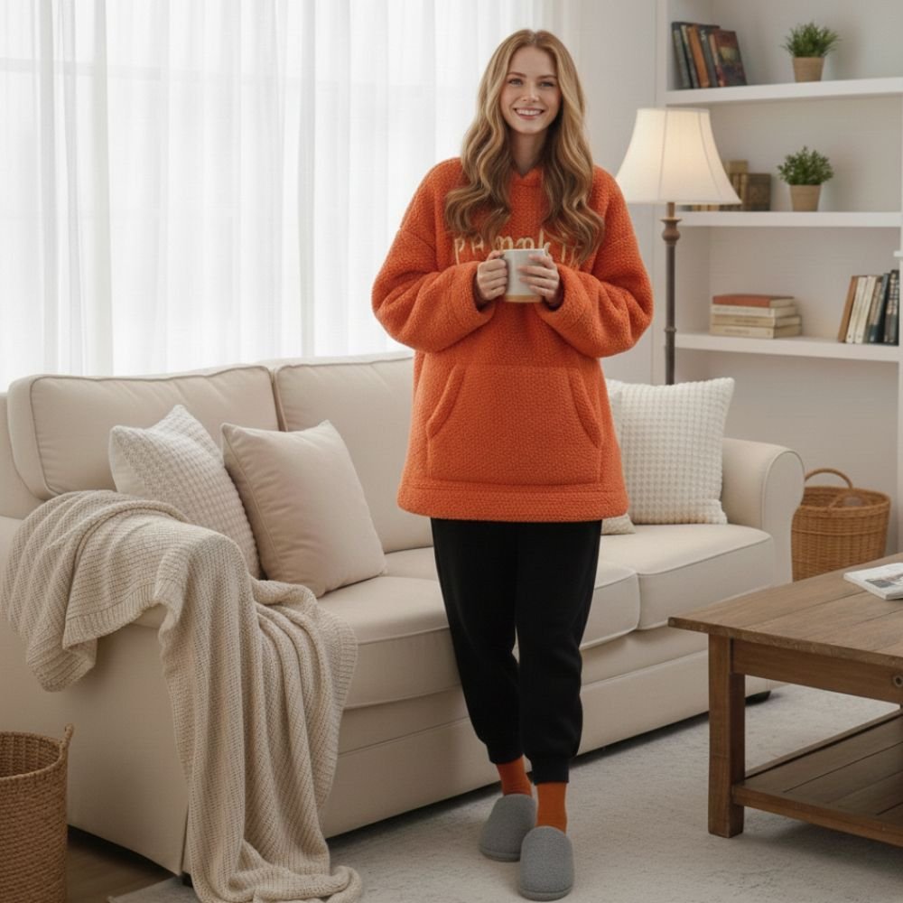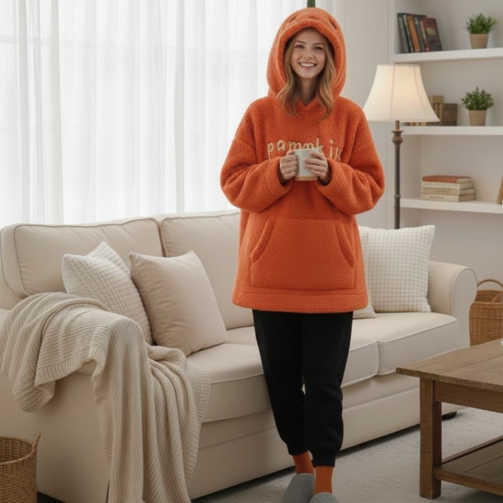 Quand le froid s’installe et que l’envie de se poser au chaud devient essentiel, ce pull citrouille devient votre meilleur allié. Sa capuche ornée d’un visage en citrouille et sa texture polaire ultra-douce transforment chaque journée froide en un moment de détente et de bonne humeur. Avec sa fermeture éclair pratique et ses poches latérales, il vous accompagne confortablement lors de vos soirées cocooning ou vos sorties décontractées. Le détail qui fait sourire ? Cette broderie « Pumpkin » sur le devant qui apporte une touche original à ce pull d’hiver. Un essentiel pour celles qui aiment mêler chaleur réconfortante et style décalé.