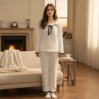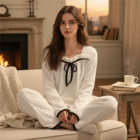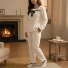 Prête à vivre l’expérience cocooning à la maison ? Ce pyjama femme hiver pilou va littéralement transformer vos soirées d’hiver en moments de pur bonheur ! Dès que vous l’enfilez, c’est comme si un nuage moelleux vous enveloppait dans une bulle de douceur. Son col orné d’un petit nœud noir est un détail qui vous fait vous sentir belle et féminine, même en mode total relax. Le tissu léger et doux sculptent joliment votre silhouette pendant que la matière pelucheuse vous protège du froid comme un câlin permanent. Sa couleur blanche vous propose un look chic et raffiné en intérieur. Un choix à faire pour celles qui veulent allier élégance et chaleur en période de froid.