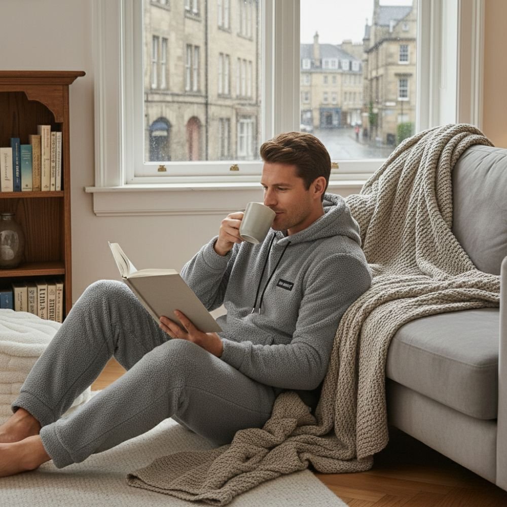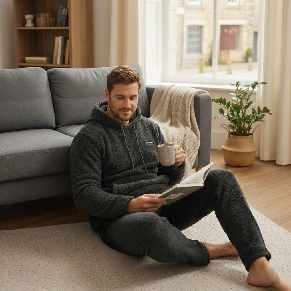 Cet hiver, optez pour une chaleur réconfortante avec ce pyjama à capuche en pilou ultra-doux. Sa matière épaissie façon fourrure offre une grande douceur et vous procure une sensation de bien-être instantanée, parfaite pour ces longues soirées d’hiver où l’on ne rêve que de confort. La capuche ajoute une touche cocooning supplémentaire, vous permettant de vous blottir complètement dans votre bulle de douceur. Conçu pour les hommes qui recherchent le parfait équilibre entre style décontracté et confort maximal, cet ensemble vous accompagne idéalement dans tous vos moments de détente à la maison. Disponible en quatre coloris neutres et intemporels, il s’adapte à tous les goûts. Ses manches longues et sa coupe libre offrent une liberté de mouvement totale, tandis que sa matière respirante maintient une température idéale sans jamais vous faire surchauffer. Un essentiel pour transformer votre quotidien en parenthèse de détente.