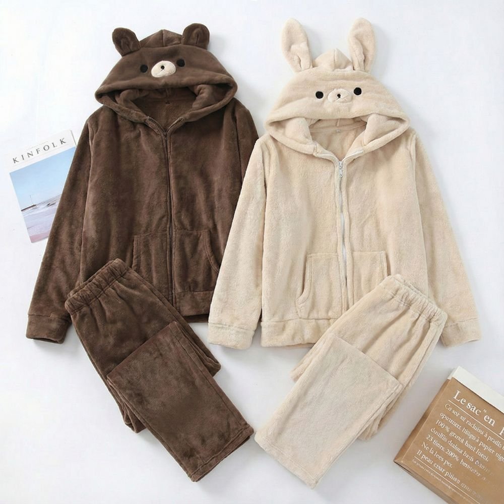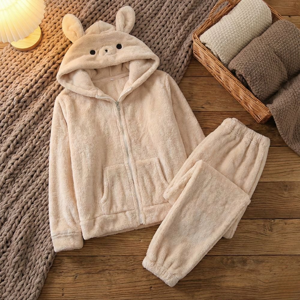 Vous savez, ce moment où vous rentrez chez vous et où la seule envie qui compte, c’est de vous glisser dans quelque chose de vraiment réconfortant ? Ce pyjama en polaire corail épaissie transforme vos soirées d’automne et d’hiver en bulles de douceur. Sa capuche ornée d’adorables oreilles d’animaux ajoute cette petite touche ludique qui fait sourire, tandis que sa matière moelleuse vous enveloppe d’une douceur réconfortante et d’une chaleur apaisante. Les poches kangourou de la veste zippée protègent vos mains de froid, et le pantalon à taille élastique s’adapte à toutes les morphologies. Offrez-vous ces instants où le confort devient un vrai câlin.