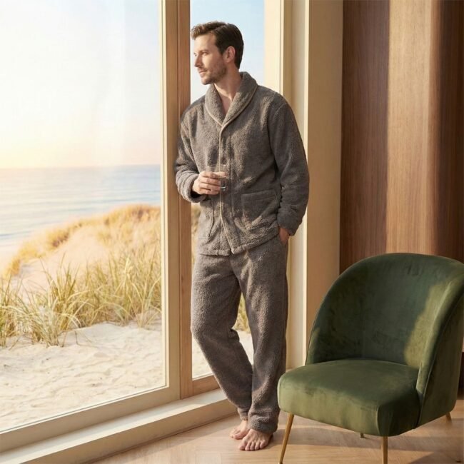 Offrez-vous le meilleur des conforts à la maison avec ce pyjama pilou homme col châle, qui réinvente l’art de la détente chez soi. Son col châle élégant apporte une touche de raffinement rare pour un pyjama, vous permettant de rester chic même en mode relaxation totale. La polaire corail épaisse vous enveloppe d’une douceur réconfortante, tandis que sa coupe soignée flatte la silhouette sans jamais comprimer. Son utilisation multiple est remarquable : parfait pour dormir, pour vos matinées paresseuses ou même pour une sortie rapide grâce à son allure soignée. Disponible en gris clair ou gris foncé, ce pyjama deviendra votre meilleur compagnon de détente tout au long de l’hiver et des saisons fraîches.
