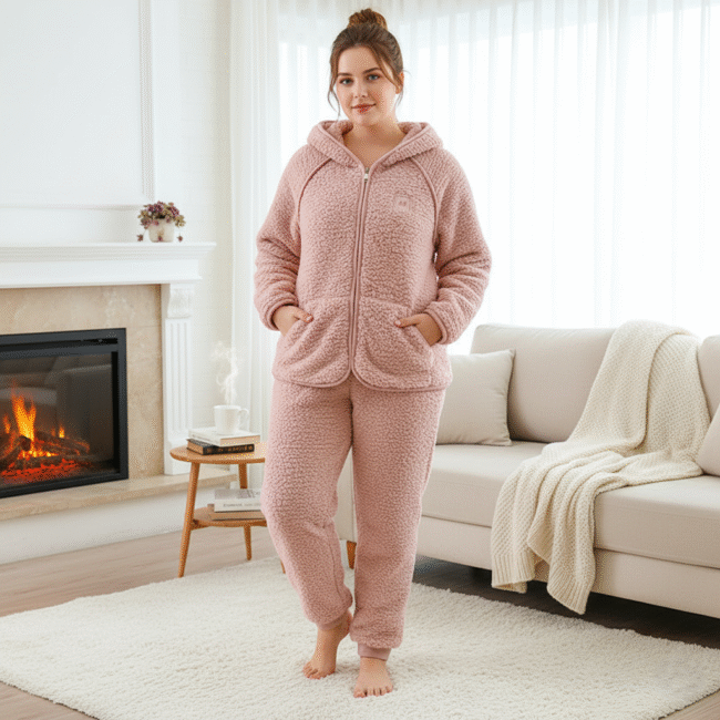 Enfin un pyjama pilou pilou qui célèbre toutes les morphologies avec style et douceur ! Cet ensemble polaire grande taille est pensé pour vous offrir un confort absolu, sans jamais comprimer ni serrer. Sa coupe ample généreuse vous laisse respirer et bouger librement, tandis que sa polaire corail extra-épaisse (301-350 g/m²) vous enveloppe dans une chaleur réconfortante incomparable. La capuche douillette ajoute cette touche cocooning parfaite pour vous lover totalement dans votre bulle de bien-être. Disponible en coloris apaisants ( rose pêche, blanc cassé, gris froid ou bleu) ce pyjama devient votre refuge préféré lors des longues soirées d’hiver. Les poches kangourou pratiques gardent vos mains au chaud, et la fermeture éclair facilite l’enfilage. Chaque détail est conçu pour votre confort : des manches longues protectrices, un pantalon ample qui respecte vos formes, une matière pelucheuse qui caresse votre peau. C’est le moment de vous faire plaisir et de vivre l’expérience cocooning que vous méritez vraiment !