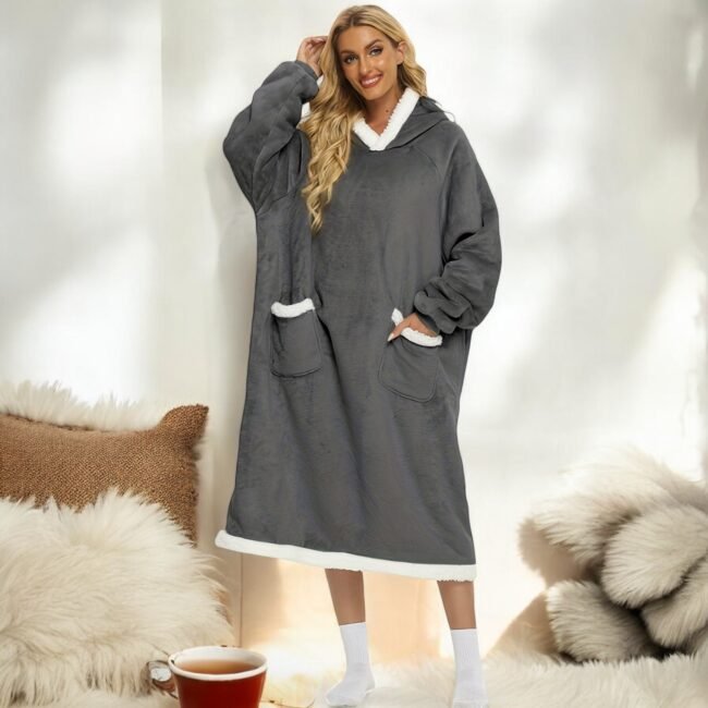 Pour la saison froide, rien de mieux qu’un sweat plaid long pour des moments de détente cosy en intérieur. Notre version sweat plaid long gris foncé a tout pour plaire et vous promet la meilleure protection qui soit grâce à sa conception soignée. Son tissu en 100% polyester est associé à une doublure fourrure sur les bordures pour une douceur parfaite au contact avec la peau. Sa densité offre également une épaisseur satisfaisante pour s’y blottir en tout confort.